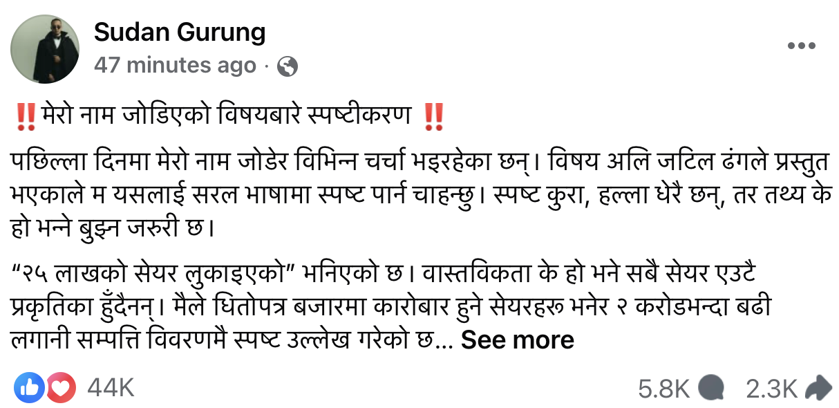 काठमाडौं । नेकपा एमालेका पूर्व उपाध्यक्ष तथा पूर्व अर्थमन्त्री सुरेन्द्र पाण्डेले पार्टी नेतृत्वको कार्यशैली र आन्तरिक अनुशासनको नाममा कार्यकर्तामाथि हुँदै आएको दबाबप्रति सार्वजनिक रूपमा असन्तुष्टि ...
