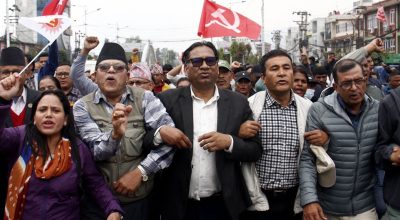 ओलीको रिहाइको माग गर्दै आज तेस्रो दिन पनि एमालेको प्रदर्शन: नेतृत्वमा चार सचिव