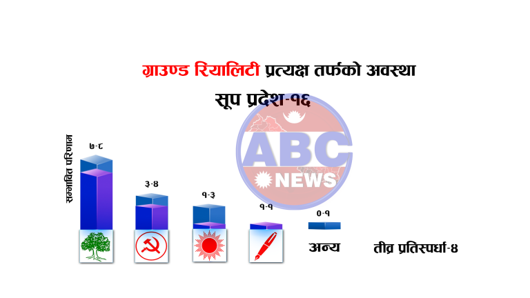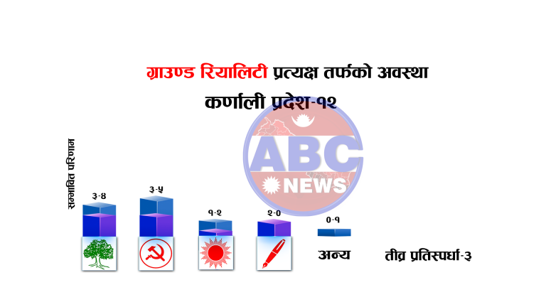काठमाडौं १ मंसिर । आसन्न आम चुनावका सन्दर्भभमा एबीसी टेलिभिजन र नेपाल पेजले देशभरको अवस्था र यस अघि प्रदेश १ र मधेशको विस्तृत विवरण प्रस्तुत गरेको छ । एबीसी टेलिभिजनको देशव्यापी स्थलगत अभियानका क्रममा गरेको रिपोटिंगमा कर्णाली र सूपमा एमाले जम्मा १ सटिमा समेटिन सक्ने खतरा देखिएको छ ।