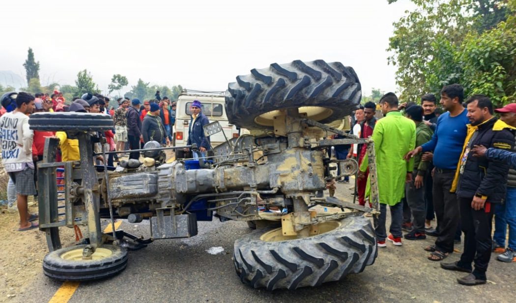 ट्याक्टर अनियंत्रित भएर सडकमा नै पल्टिएको स्थानिय प्रत्यक्षदर्शीले वताएका छन् ।