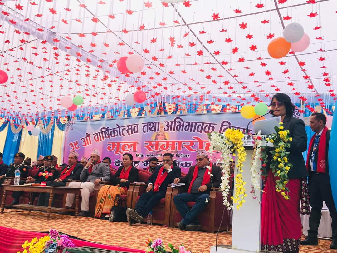 सो अवसरमा विद्यार्थीहरूले गीत, नृत्यसंगै पिटीको प्रस्तुति देखाएका थिए भने उत्कृष्ट शिक्षक शिव पौडेल र दुर्गा पन्थी तथा कर्मचारी रामु गैरेलाई सम्मान गरिएको थियो ।