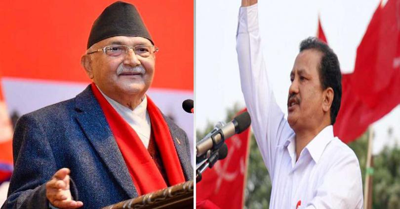 काठमाडौं, २४ माघ । नेकपा एमालेका अध्यक्ष केपी शर्मा ओली र नेपाल कम्युनिस्ट पार्टी नेकपाका महासचिव नेत्रविक्रम चन्द ‘विप्लव’ बीच भेटवार्ता भएको छ।