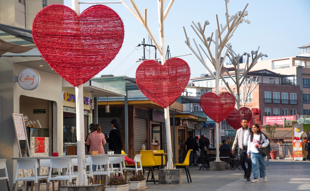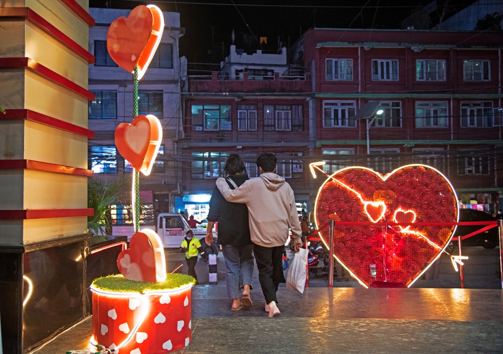 यतिबेला काठमाडौं उपत्यकामा भ्यालेन्टाइन डेको विशेष माहोल छ । काठमाडौं उपत्यकामा भ्यालेन्टाइन डे स्पेशल रुपमा मनाइँदै छ । काठमाडौं मात्रै होइन, भ्यालेन्टाइन डे देशभर नै प्रेमिल रुपमा मनाइँदै छ । ७ फेब्रुअरीबाट शुरु भएको भ्यालेन्टाइन डे आज प्रमिस डे हो । आज प्रेमिहरु एकअर्काबीचमा वाचा वन्धनहरु खाने गर्दछन् । भ्यालेन्टाइन डे इटालीको रोमवाट शुरु भएको मानिन्छ । तेस्रो शताब्दीको अन्त्यतिर प्रारम्भ भएको भ्यालेन्टाइन डेको इतिहास सम्झँदा रोमका एक सम्राट्ले नारीसँगको सम्बन्धका कारण सुरक्षाकर्मीहरूमार्फत गोप्य कुराहरू बाहिर जाने डरले प्रेम र विवाहमा रोक लगाउने आदेश जारी गरे ।