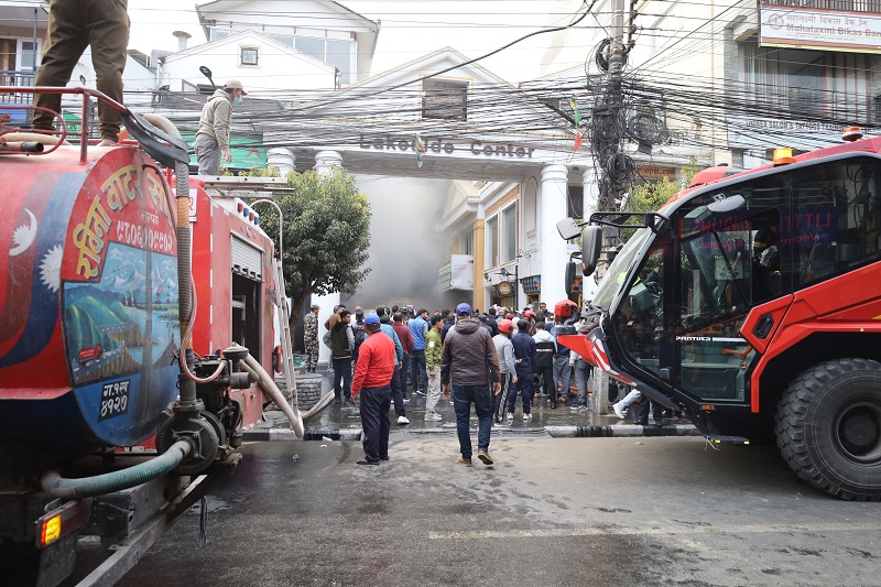 काठमाडौं, २८ माघ । पोखराको लेकसाइडमा रहेको लेकसाइड सेन्टरमा लागेको आगो तीन घण्टा पछि निभाइएको छ ।दिउँसो पौने चार बजे लागेको आगो नेपाली सेना, सशस्त्र प्रहरी र नेपाल प्रहरीको टोलीले झण्डै तीन घण्टापछि निभाएको हो ।
