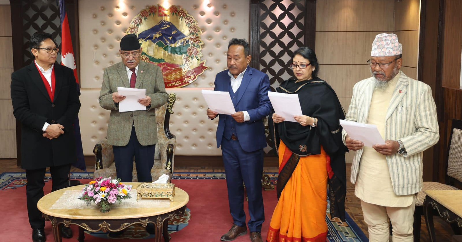 उनीहरूलाई प्रधानमन्त्री पुष्पकमल दाहाल ‘प्रचण्ड’ले बालुवाटारस्थित निवासमा पद तथा गोपनियताको शपथग्रहण गराएका हुन् ।