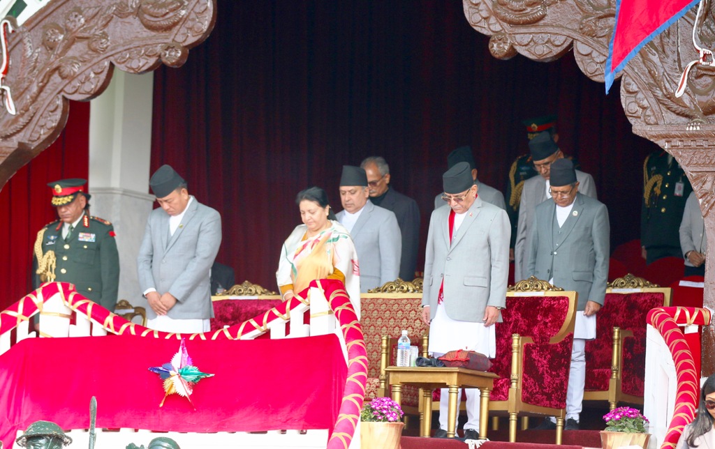 काठमाडौं, ७ फागुन । ७३ औं प्रजातन्त्र दिवस आज देशभरि विभिन्न कार्यक्रम गरी मनाइएको छ। काठमाडौंको टुँडिखेलमा ७३ औं प्रजातन्त्र मूल समारोह समितिले विशेष कार्यक्रम आयोजना गरेको छ। उक्त कार्यक्रममा राष्ट्रपति विद्यादेवी भण्डारी, प्रधानमन्त्री पुष्पकमल दाहाल ‘प्रचण्ड’ लगायत उच्च पदस्थ सरकारी अधिकारीहरू सहभागी भएका छन्।