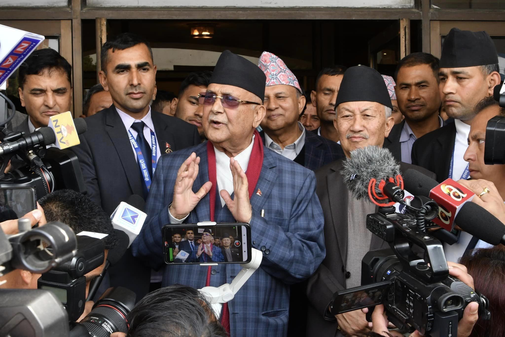 काठमाडौँ १३ फागुन । नेकपा एमालेका अध्यक्ष केपी शर्मा ओलीले नेपाली कांग्रेस नेतृत्वमा आठ दलीय गठबन्धन बनेको आफूले कतै नदेखेको बताएका छन् । अध्यक्ष ओलीले एमालेको तर्फबाट सुवाष नेम्वाङले राष्ट्रपति पदका लागि उम्मेदवारी दिएपछि बोल्दै सत्ता गठबन्धनबाहेक कुनै गठबन्धन नरहेको बताए छन् ।