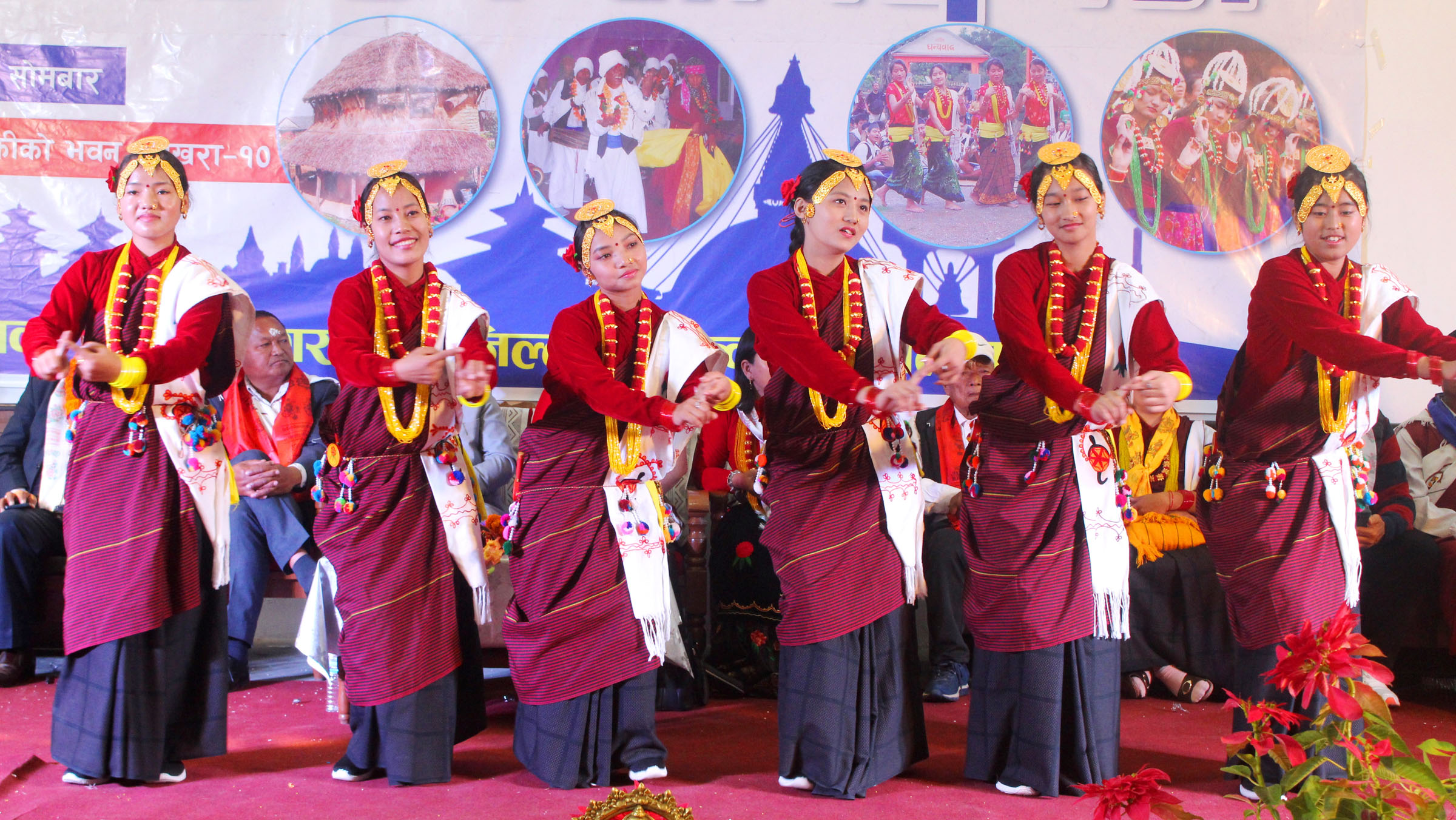 झाँकी प्रदर्शनीपछि पोखरा–१० मा रहेको मगर संघको सभाकक्षमा दिवसको मूल समारोह केही समय चल्यो । त्यहाँ पनि भाषणभन्दा सांस्कृतिक प्रस्तुतिलाई आयोजकले बढी स्थान दियो । विभिन्न समूहले आ–आफ्नो गीत र नाच देखाए । भित्र दिवसको मूल समारोह चलिरहँदा सभाकक्षबाहिर नाचगान गरेर रमाउनेहरूको सङ्ख्या पनि उत्तिकै थियो । के महिला, के पुरुष । सबै आफ्नो मगर पहिरनमा ठाटिएर दिवस मनाउन पुगेका थिए ।