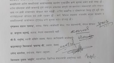 काठमाडौं । माओवादी धारका ८ दलले शान्ति सम्झौता र परिवर्तनका विरूद्ध हुने गतिविधिको एकमत भएर प्रतिवाद गर्ने बताएका छन्।