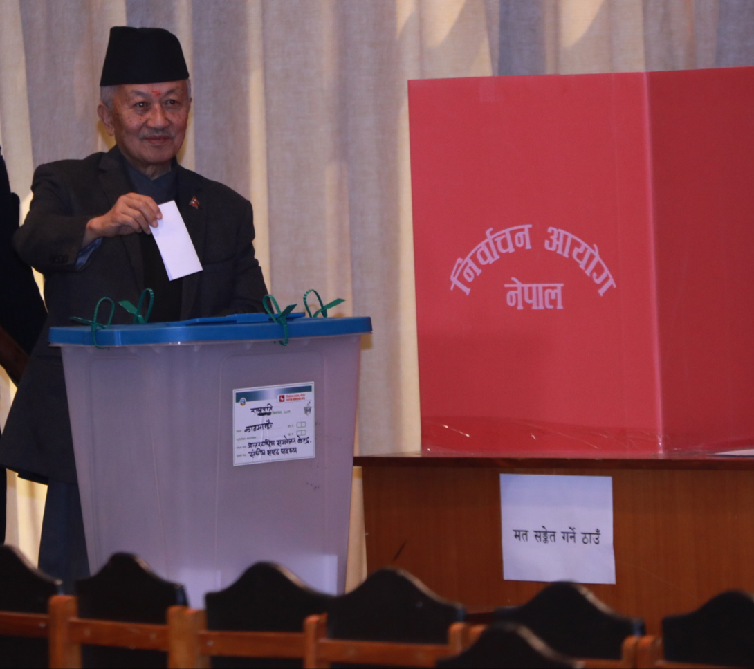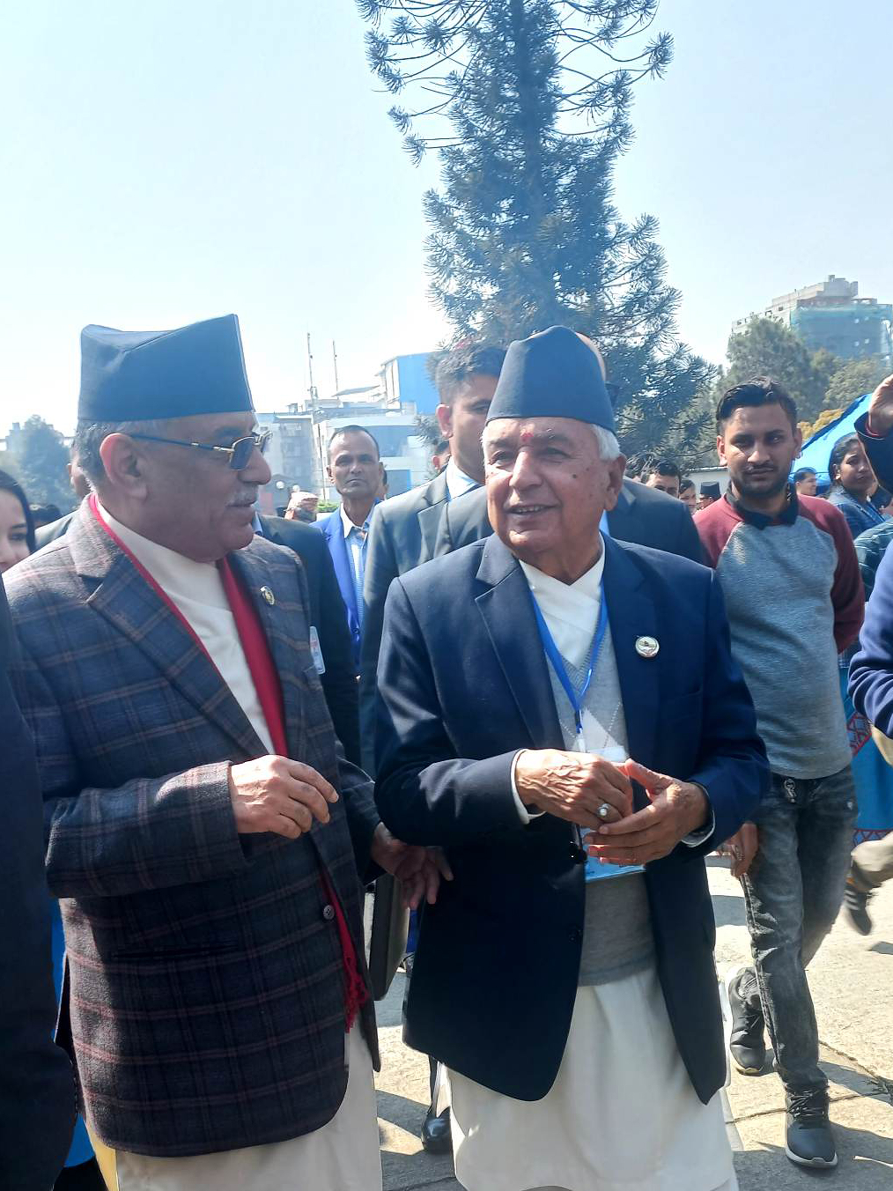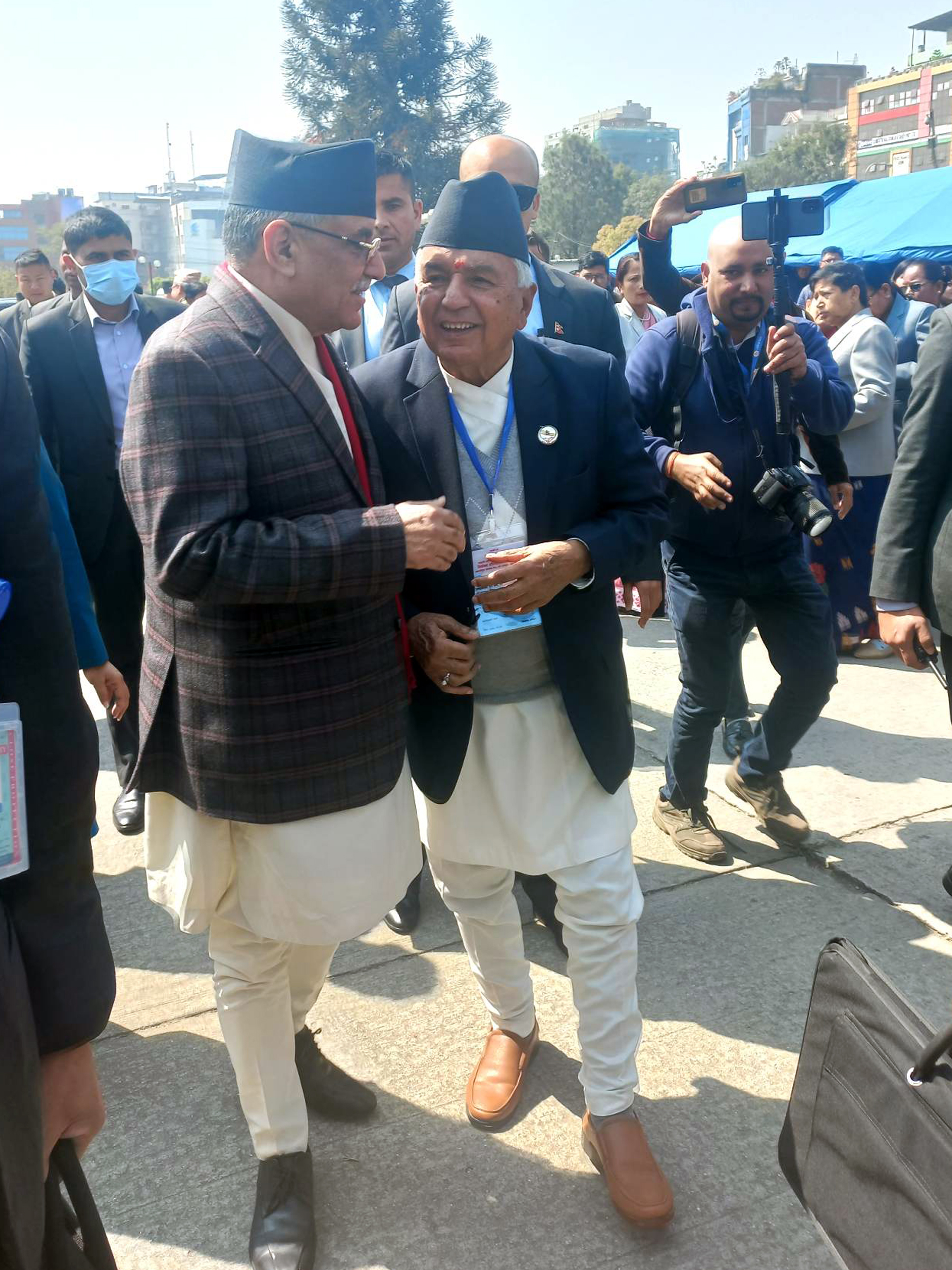 काठमाडौं, २५ फागुन । प्रधानमन्त्री पुष्पकमल दाहाल ‘प्रचण्ड’ले राष्ट्रपति पदको निर्वाचनमा मतदान गर्नुभएको छ । नयाँ बानेश्वरस्थित संसद् भवनको ल्होत्से कक्षमा कायम गरिएको सङ्घीय सांसद मतदान केन्द्रमा उहाँले मतदान गर्नुभएको हो । राष्ट्रपतिका दुवै उम्मेदवार रामचन्द्र पौडेल र सुवासचन्द्र नेम्वाङले यसअघि नै मतदान गरिसक्नुभएको छ । अहिले बिहान १० देखि सुरु भएको मतदान दिउँसो ३ बजेसम्म जारी रहने सहायक निर्वाचन अधिकृत अमृताकुमारी शर्माले जानकारी दिनुभयो । तेस्रो राष्ट्रपतिका लागि नेपाली कांग्रेसका रामचन्द्र पौडेल र नेकपा (एमाले) का सुवासचन्द्र नेम्वाङ प्रतिस्पर्धामा हुनुहुन्छ ।