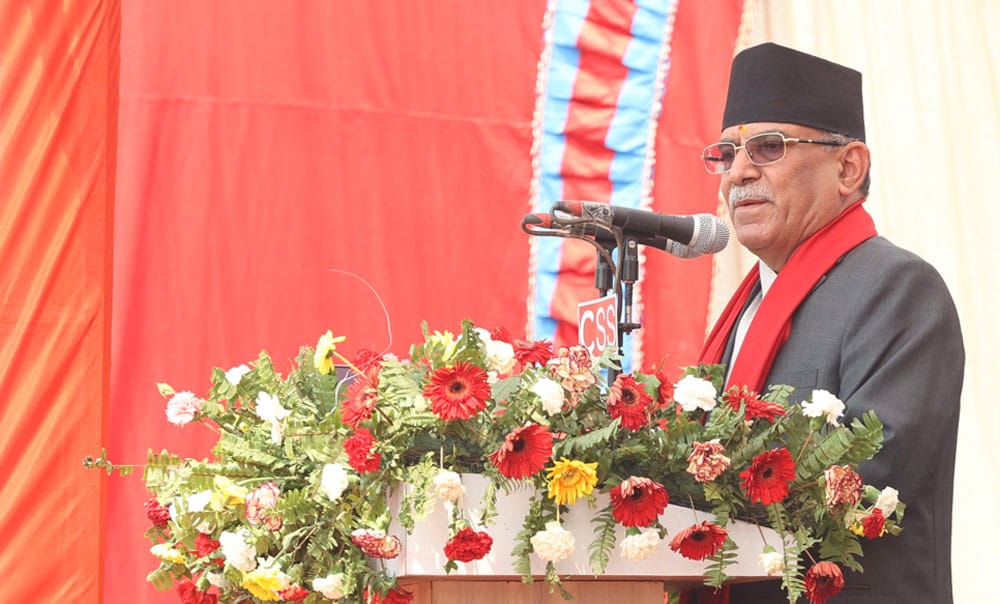 नेपालको राजनीतिक स्थायित्वलाई नयाँ गति दिने सङ्कल्पसहित आफू प्रधानमन्त्री पदको जिम्मेवारीमा रहेको उहाँको भनाइ थियो । उहाँले भन्नुभयो, “राजनीतिक स्थायित्वले पनि नयाँ आधार प्राप्त गर्नेछ भन्ने मलाई विश्वास छ ।” सिङ्गो राष्ट्रलाई एकताबद्ध बनाएर विकास र समृद्धिको दिशातर्फ लैजान आफू लागिपरेको जनाउँदै उहाँले भन्नुभयो, “मेरो चरित्र र विशेषता भनेको सबैलाई मिलाएर लाने नै रहेको छ ।” बैसठ्ठी वर्षअघि सुरु भएको भरतपुरको विमान उडान कार्य अहिले आएर विस्तार र ट्रमिनल भवन निर्माणको कार्य सुरु हुनेले छुट्टै महत्व बोकेको उहाँले बताउनुभयो । यो आयोजना सम्पन्न भएसँगै ७२ सिटे जहाजको उडान र अवतरण सुरु हुने र यसले चितवनको मात्रै नभएर राष्ट्रको अर्थतन्त्रलाई समेत टेवा पुग्ने प्रधानमन्त्री दाहालले विश्वास व्यक्त गर्नुभयो ।