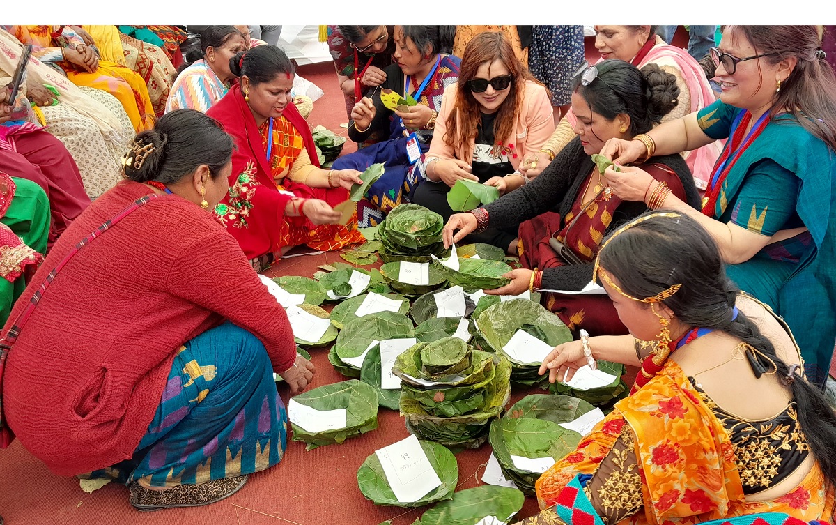 ताप्लेजुङ, २४ चैत । ताप्लेजुङको फुङलिङ नगरपालिका–९ हाङ्देवाकी ८५ वर्षीया लक्षिमादेवी महतारा बाँसको सिन्का र सालको पात बोकेर टपरी गाँस्ने प्रतिस्पर्धामा सहभागी हुन सदरमुकाम फुङलिङमा जारी औद्योगिक कृषि तथा पर्यटन मेलामा अन्य प्रतिस्पर्धीसँगै आइन् । धार्मिकरुपमा मात्रै नभई स्वास्थ्यका लागि समेत फाइदाजनक मानिने सालको पातबाट तयार हुने टपरी हिजोआज प्रयोग हुने क्रम घट्दो छ । पछिल्लो पुस्ता यसको महत्वबारे कमै जानकार छ । बुन्ने सीप छैन । यस्तो अवस्थामा टपरी लोप हुने अवस्थामा छ । यसको ख्याल गर्दै ताप्लेजुङमा टपरी बुन्ने प्रतियोगिता आयोजना गरिएको हो ।