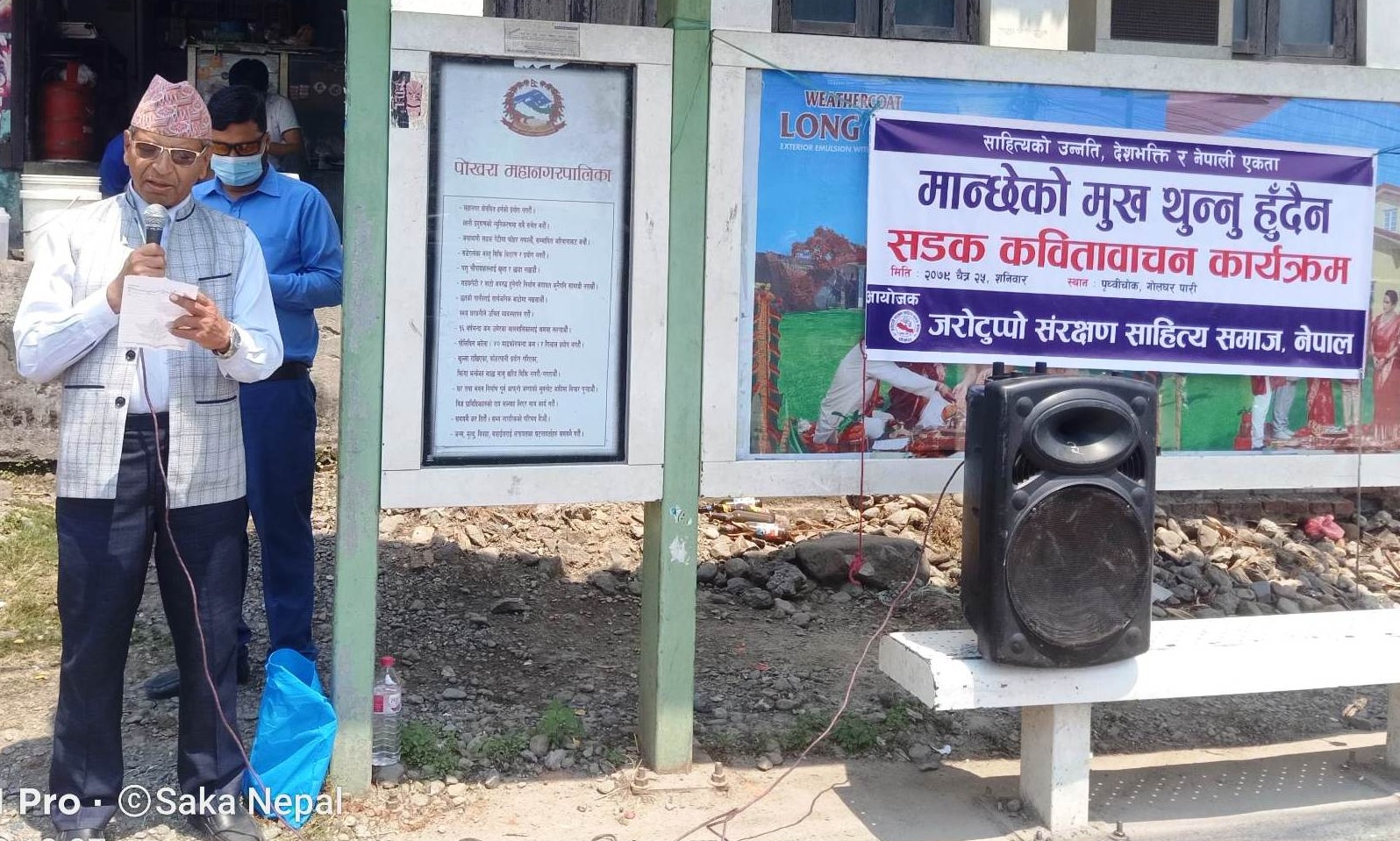 गण्डकी, २६ चैत । जरोटुप्पो संरक्षण साहित्य समाज नेपालको आयोजनामा शनिबार पोखरामा ‘मान्छेको मुख थुन्न हुँदैन’ सडक कविता वाचन गरिएको छ ।