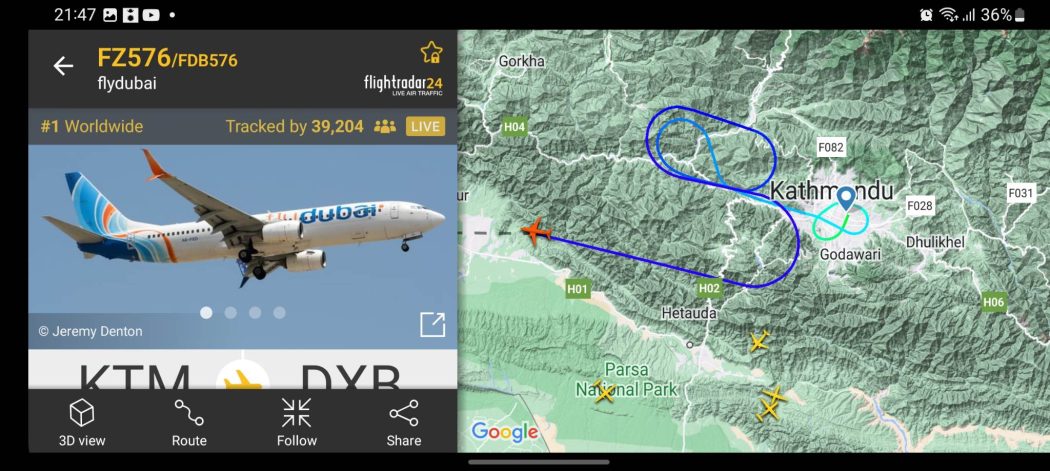अन्य गन्तव्यतर्फबाट आएका जहाजलाई एकैछिन रोकेर फ्लाई दुवईको जहाज अवतरणको तयारी गरिएको थियो ।