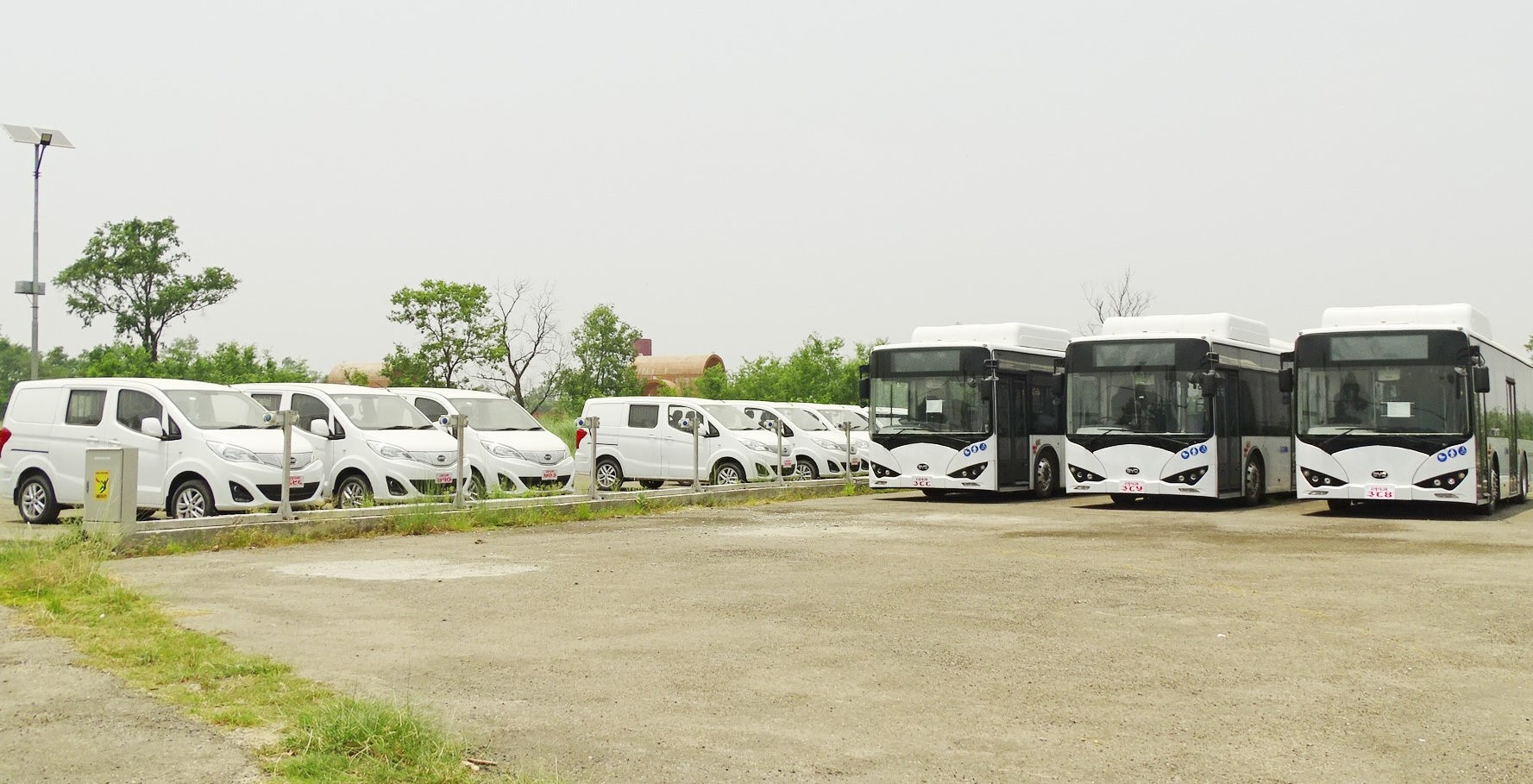 लुम्बिनीलाई प्रदूषणमुक्त राख्न २०७७ मंसिर ९ गते यी विद्युतीय बस र ट्याक्सी लुम्बिनी ल्याइएको हो तर आवश्यक कानुनी प्रक्रियामा ढिलाइ र सञ्चालनको नमुना तयार नहुँदा दुई वर्षभन्दा बढी समयदेखि खुला आकाशमुनि थन्किएका थिए । भैरहवास्थित गौतमबुद्ध अन्तर्राष्ट्रिय विमानस्थलबाट बुद्ध जन्मस्थल लुम्बिनी र बुद्धस्थल तिलौराकोट, रामग्राम र देवदहसँगलगायतका बुद्धसँग सम्बन्धित क्षेत्रलाई जोड्न र ती क्षेत्रमा पर्यटक आवतजावत सहज बनाउन ती साधन अनुदानमा आएका हुन् ।
