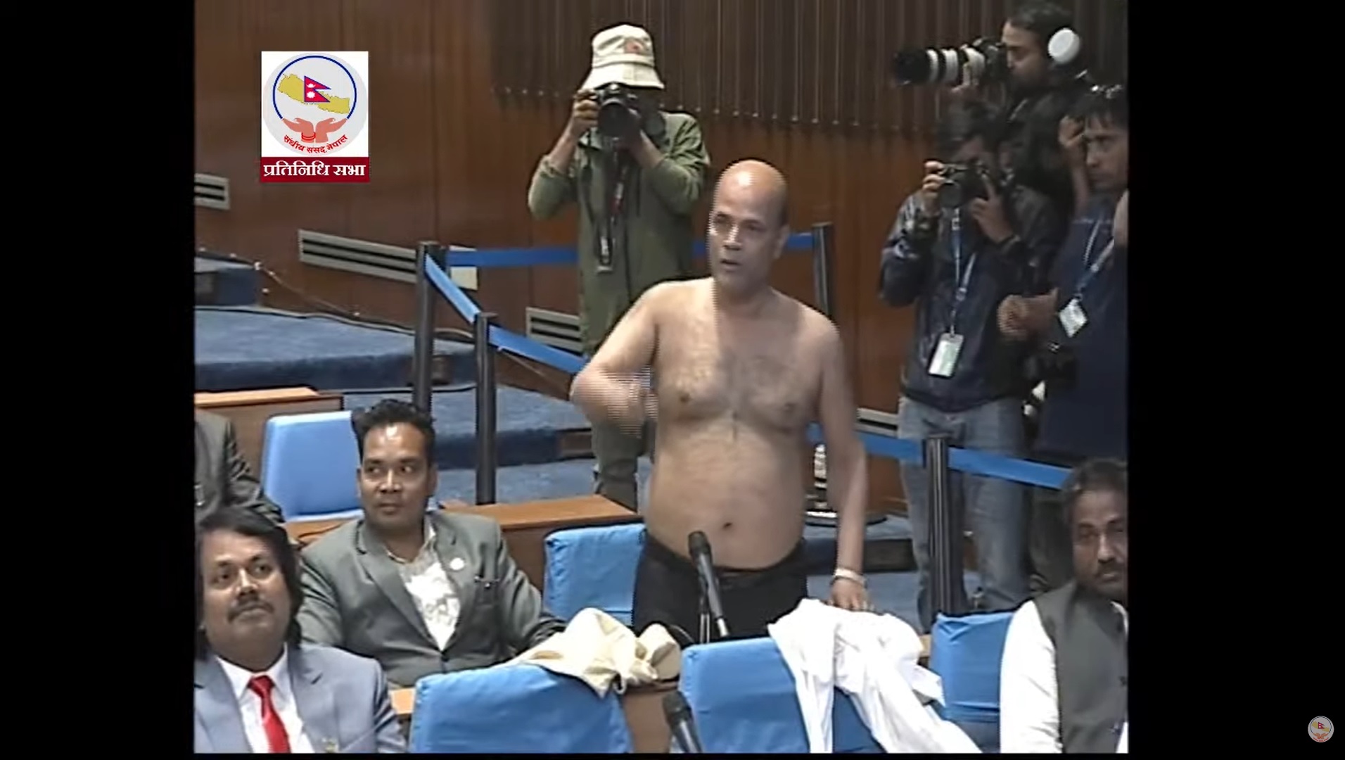 उनले कपडा खोलेपछि सभामुख घिमिरेले पटकपटक उनलाई सभ्यताका साथ आफ्ना कुराहरू राख्न चेतावनी दिए ।