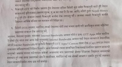 काठमाडौं । नेपाल केबल टेलिभिजन व्यवसायी महासंघका प्रतिनिधिले सञ्चार तथा सूचना प्रविधि रेखा शर्मालाई भेटेर गैरकानूनी प्रसारण तत्काल बन्द गराउन सरकारको ध्यानाकर्षण गराएका छन् । गैरकानूनी रूपमा सञ्चालनमा रहेका च्यानल बन्डलिङ, ओटीटी प्ल्याटफर्मका सामाग्रीहरूको अवैध प्रसारण, विदेशी सशुल्क च्यानलहरूको शोषणका कारण नेपाली उद्योग धराशायी बन्दै गएकोमा उनीहरूले सरकारको ध्यानाकर्षण गराएका हुन् ।