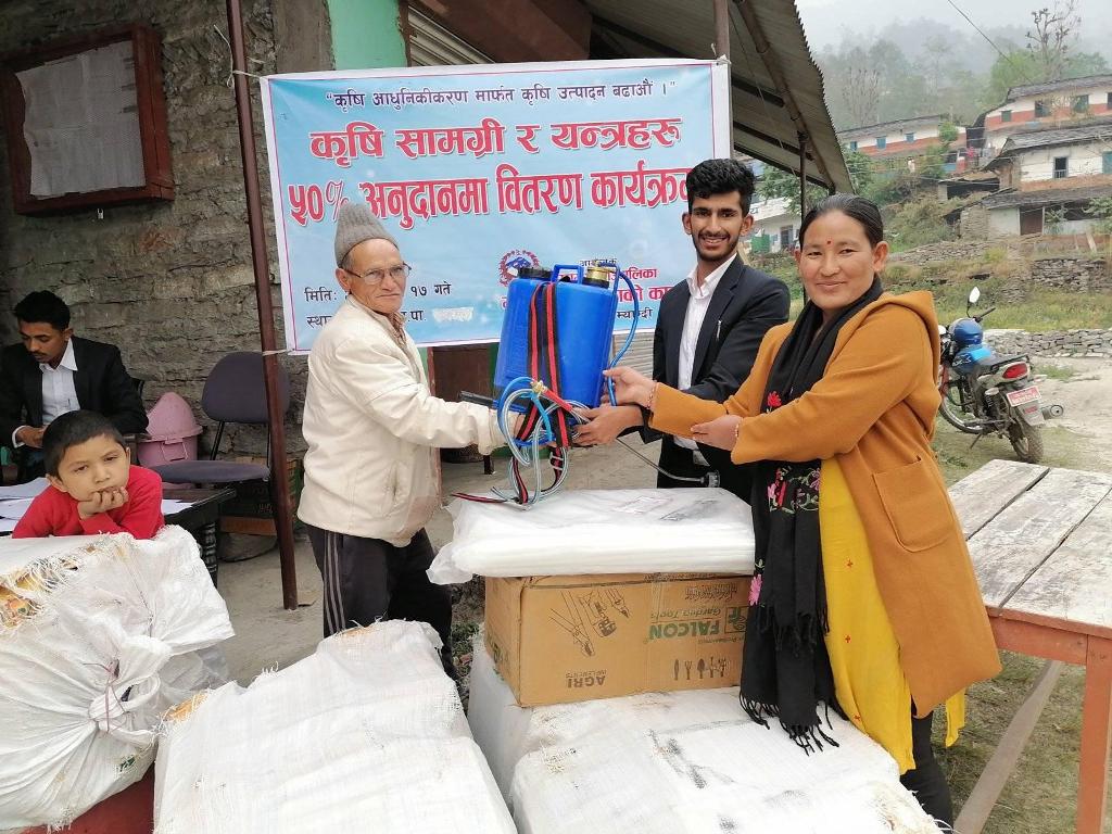करिब रु १० लाख बराबरको साना कृषि औजार वितरण गरिएको पशु शाखा प्रमुख राजु कुँवरले जानकारी दिनुभयो ।