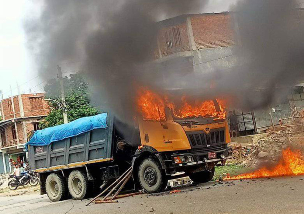 टिपरको ठक्करले बालिकको मृत्यु भएपछि आन्दोलित स्थानीयले मदन भण्डारी राजर्माग हुँदै पूर्वबाट पश्चिम तर्फ जाँदै गरेको प्रदेश–२–०१–००१ क ००२४ को अर्को टिपरमाथि आगजनी गरेका छन् । टिपरमा गरिएको आगजनी निभाउन गएको चौदण्डीगढी नगरपालिकाको दमकल समेत स्थानीयले तोडफोड गरेका छन् । तोडफोड गरिएको दमकल चल्ने अवस्थामा नरहेको प्रहरीले जनाएको छ ।