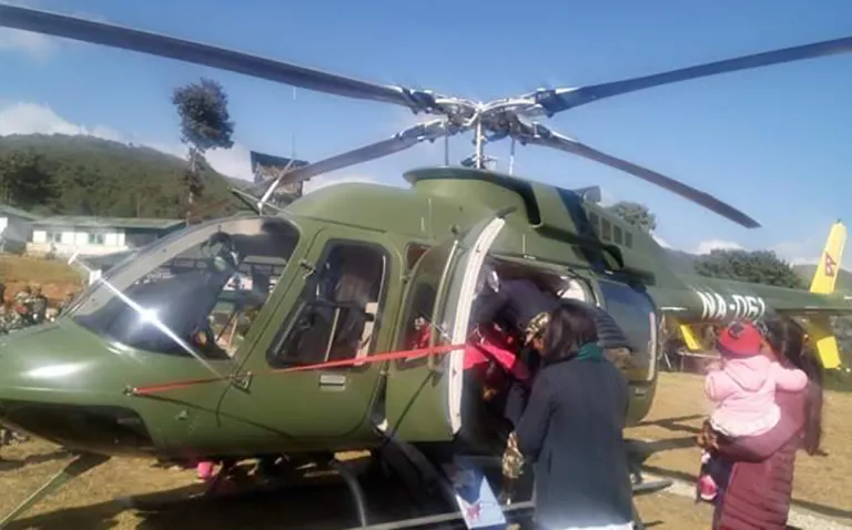 काठमाडौं, ९ जेठ । दार्चुलामा एक सुत्केरीलाई हेलिकप्टरमार्फत उद्धार गरेर कर्णाली प्रादेशिक अस्पताल पु¥याइएको छ । जिल्लाको मालिकार्जुन गाउँपालिका–६ उकुकी २७ वर्षीया पुष्पा महरालाई राष्ट्रपति महिला उत्थान कार्यक्रमअन्तरगत नेपाली सेनाको हेलिकप्टरबाट उद्धार गरिएको जिल्ला प्रहरी कार्यालयका प्रहरी निरीक्षक तथा सूचना अधिकारी ज्ञानेन्द्रबहादुर सिंहले जानकारी दिनुभयो
