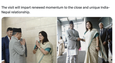 काठमाडौं १७ जेठ । चारदिने भारत भ्रमणका लागि बुधबार नयाँदिल्ली पुगेका प्रधानमन्त्री पुष्पकमल दाहाल प्रचण्डलाई इन्दिरा गान्धी अन्तराष्ट्रिय विमानस्थलमा भारतका विदेश राज्यमन्त्री मिनाक्षी लेखीले स्वागत गरेकी छन् ।