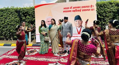 लेखीसहित विदेश मन्त्रालयका अधिकारीहरू पनि विमानस्थलमा पुगेका छन् । प्रधानमन्त्री प्रचण्डको स्वागतका लागि विमानस्थल बाहिर सांस्कृतिक कार्यक्रम तथा झाँकी प्रदर्शन गरिएको छ ।