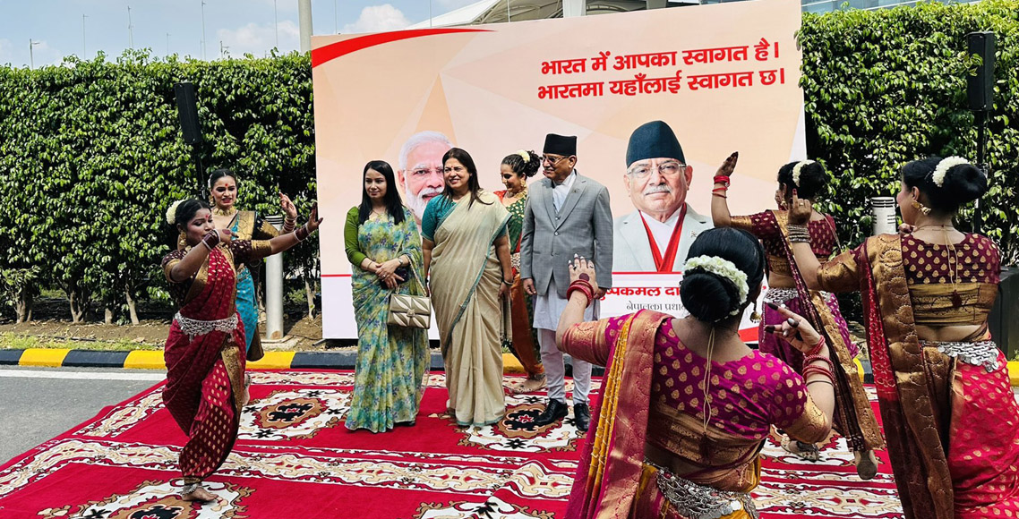 नयाँ दिल्ली, १७ जेठ । बुधबार भारत भ्रमणमा आएका प्रधानमन्त्री पुष्पकमल दाहाल प्रचण्ड नयाँदिल्ली अवतरण गरेका छन् । विमानस्थलमा अहिले उनको स्वागत गरिएको छ । यसका लागि सांस्कृतिक कार्यक्रम गरिएको छ ।प्रधानमन्त्री दाहालको स्वागत विमानस्थलमा भारत सरकारका विदेश राज्यमन्त्री मिनाक्षी लेखीले गर्दै कार्यक्रम रहेको छ ।