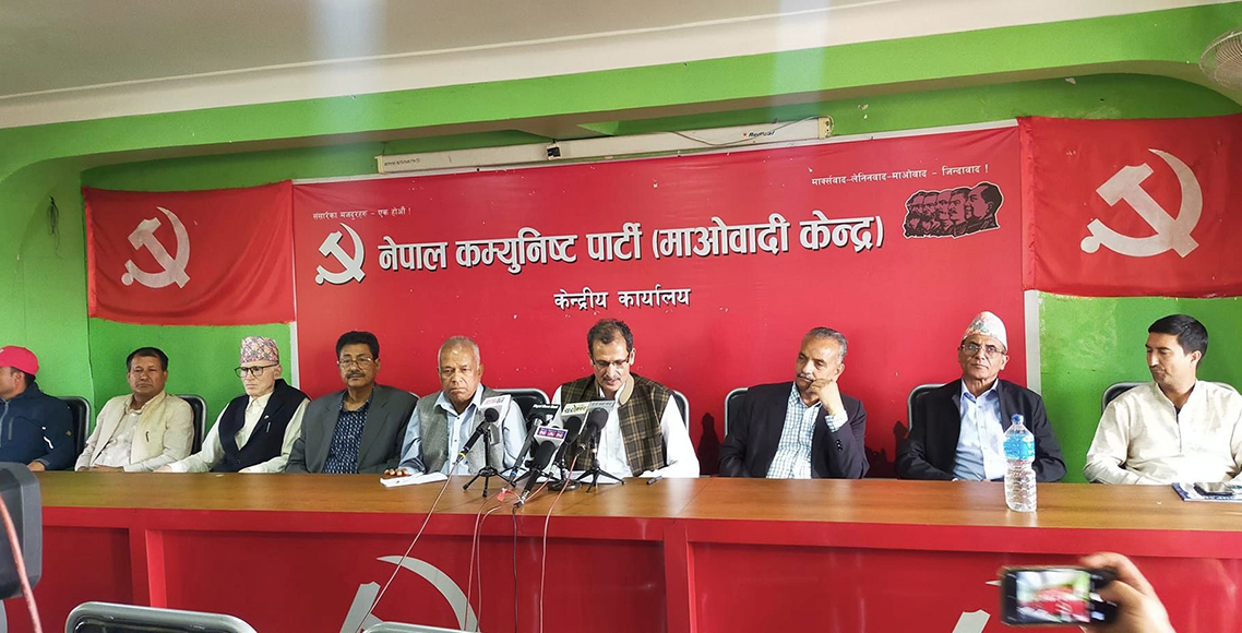 गत जेठ ५ देखि १८ गतेसम्म भएको चीन भ्रमणबारे जानकारी गराउँदै माओवादी केन्द्रको प्रतिनिधि मण्डल। तस्बिर स् अग्नि सापकोटाको सचिवालय