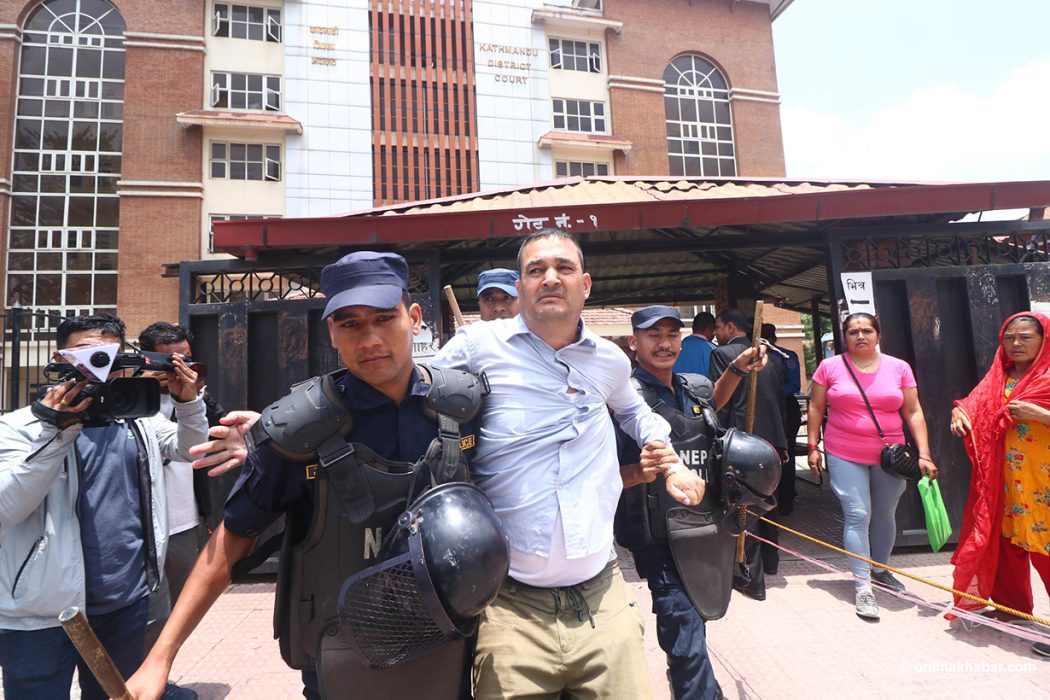 काठमाडौं । आफूमाथि आक्रमण गर्नेहरुको मुद्दा फिर्ता लिने निर्णयविरुद्ध धर्ना दिन जिल्ला अदालत, काठमाडौं पुगेका उपप्राध्यापक प्रेम चलाउने पक्राउ परेका छन् ।