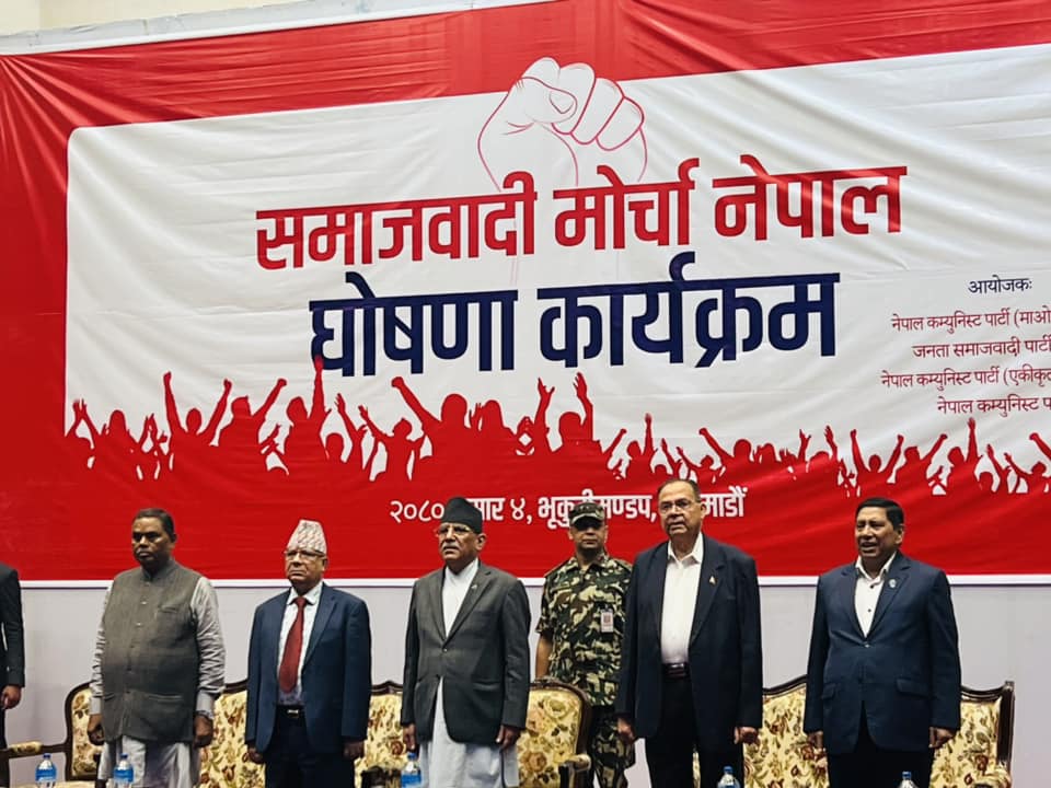 सोमबार राष्ट्रिय सभागृहमा आयोजित एक कार्यक्रमबीच समाजवादी मोर्चाको घोषणा भएको हो।