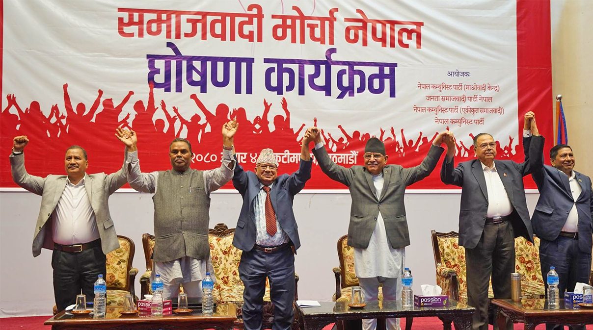 समाजवादी मोर्चा घोषणासभालाई सम्बोधन गर्दै उनले भने, ‘यसलाई अझै विस्तार गर्नुपर्ने अवस्था छ। यो सत्तालाई टिकाउने मोर्चामात्र नबनोस्। यो आमुल परिवर्तनको मोर्चा बनोस्।’