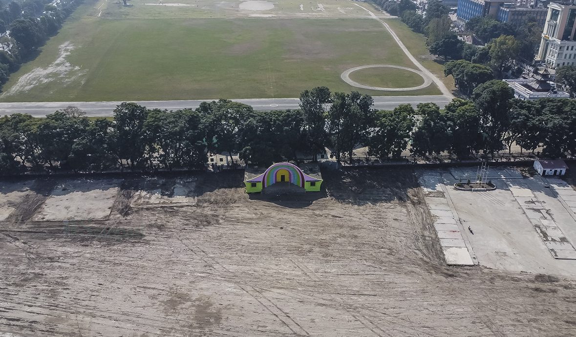 ुखुलामञ्चको पश्चिमतिर भएको कंक्रिट संरचना सबै निकालिसक्यौं,ु उनले भने, ुपूर्व भागमा बाँकी रहेको भोलिसम्ममा निकालिसक्छौं। भोलिदेखि कंक्रिटमुक्त खुलामञ्च हुनेछ।ु