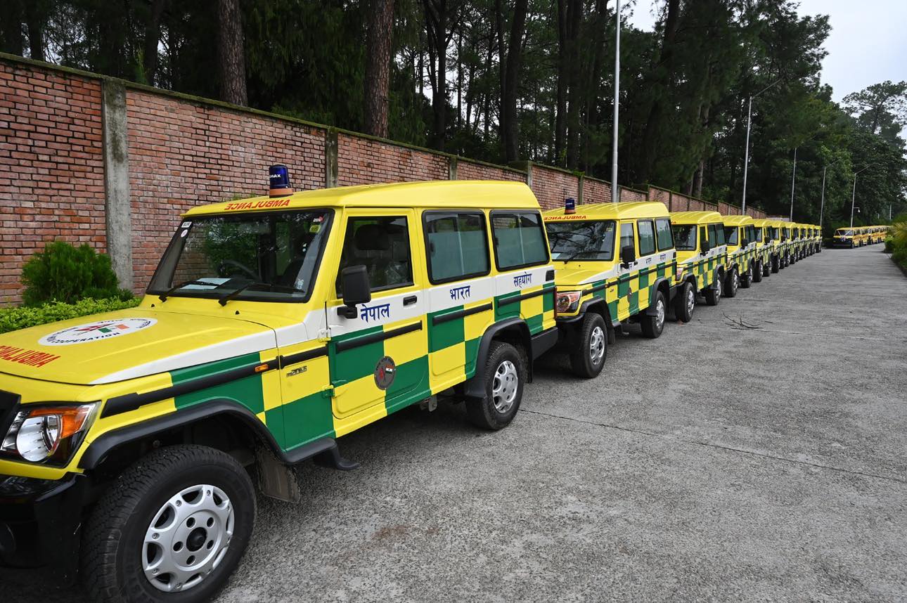 सन् १९९४ यता भारतले आजको सहित हालसम्म नेपालका विभिन्न जिल्लामा रहेका विभिन्न संघ संस्थालाई ९७४ वटा एम्बुलेन्स र २३४ वटा स्कुल बस उपहारस्वरुप उपलब्ध गराइसकेको छ ।