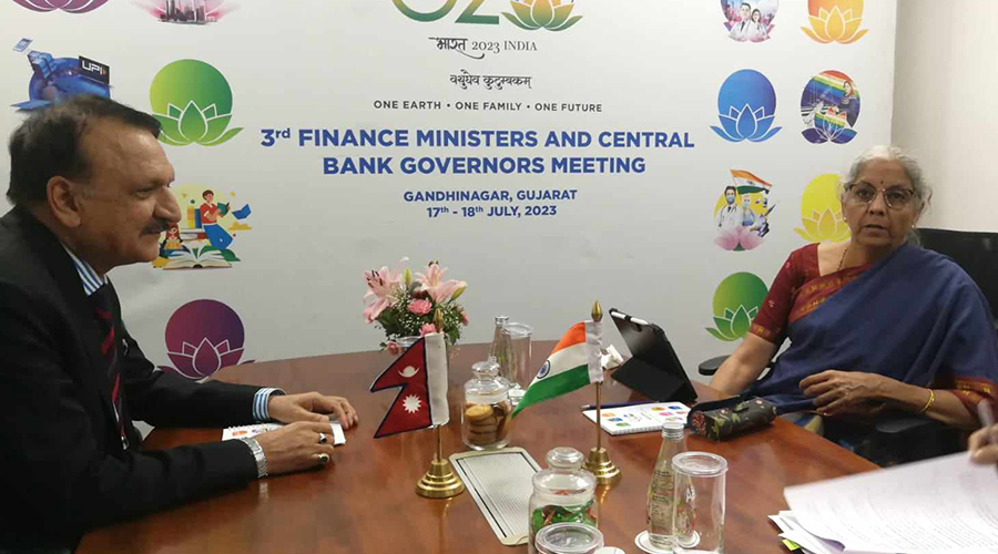 काठमाडौ साउन २ ।भारतको गुजरातमा भइरहेको जी–२० मुलुकका अर्थमन्त्रीहरूको बैठकका अवसरमा अर्थमन्त्री डा प्रकाशशरण महत र भारतीय अर्थमन्त्री निर्मला सीतारमणबीच आपसी सहयोग र द्विपक्षीय सम्बन्धका बारेमा छलफल भएको छ । छलफलका क्रममा भारतीय सहायताबाट नेपालमा सञ्चालित विकास परियोजना कार्यान्वयनमा देखिएका समस्या समाधान गरी समयमै सम्पन्न गर्न दुवै अर्थमन्त्रीले जोड दिनुभएको अर्थमन्त्री डा महतको सचिवालयले जनाएको छ ।