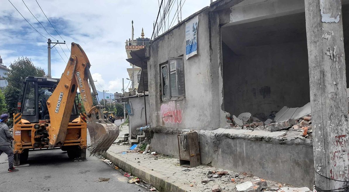 सेवा सदनमा रहेका सामग्रीहरु हटाएपछि उक्त स्थानमा डोजर चलाउने काम भइरहेको महानगरका नगर प्रहरी उपरीक्षक दिनेश अर्यालले जानकारी दिए ।