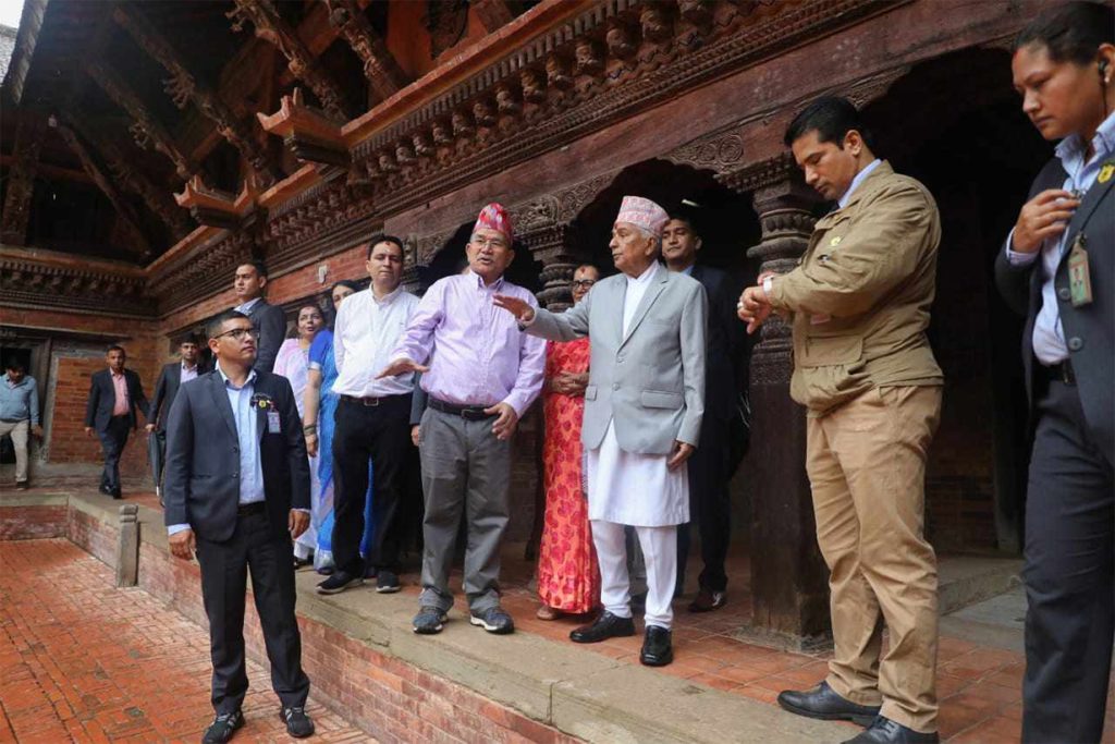 काठमाडौ साउन १२ । राष्ट्रपति रामचन्द्र पौडेलले ललितपुरको पाटन कृष्ण मन्दिरको दर्शन गरेका छन् । साथै उनले पाटन संग्रहालय पनि अवलोकन गरे ।राष्ट्रपति पौडेल आज बिहान पाटन दरबार क्षेत्रमा पुग्दा ललितपुर महानगरपालिकाका प्रमुख चिरीबाबु महर्जनले स्वागत गरेका थिए ।पाटन संग्रहालयका निमित्त कार्यकारी निर्देशक सुरेश लाखे र स्मारक संरक्षण तथा दरबार हेरचाह कार्यालयका निमित्त प्रमुख शारदा शिवाकोटीले सो क्षेत्रको जानकारी गराएको राष्ट्रपतिका प्रेस सल्लाहकार किरण पोखरेलले जानकारी दिए ।