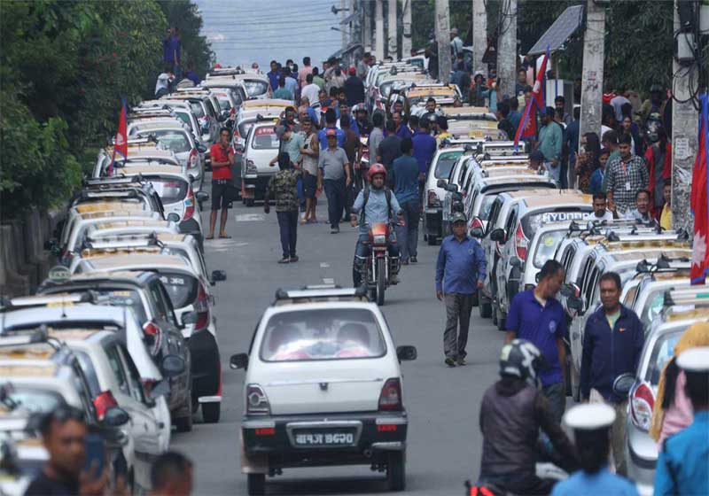 काठमाडौं, २५ साउन । काठमाडौंको नयाँबानेश्वरमा ट्याक्सी चालकहरुले प्रदर्शन गरेका छन् । उनीहरुले सडकका दुवै किनारमा ट्याक्सी तेर्स्याएर प्रदर्शन गरेका हुन् ।