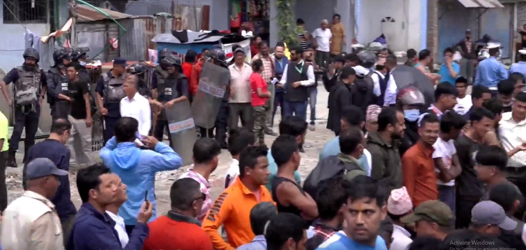 अहिले दुई नगरका अधिकारीबीच वार्ता चलिरहेको छ। तर काठमाडौंका नगर प्रहरी प्रमुख राजुनाथ पाण्डेसहितको टोलीले डोजर लगाएर स्ल्याब भत्काउने तयारी गरेको हो।