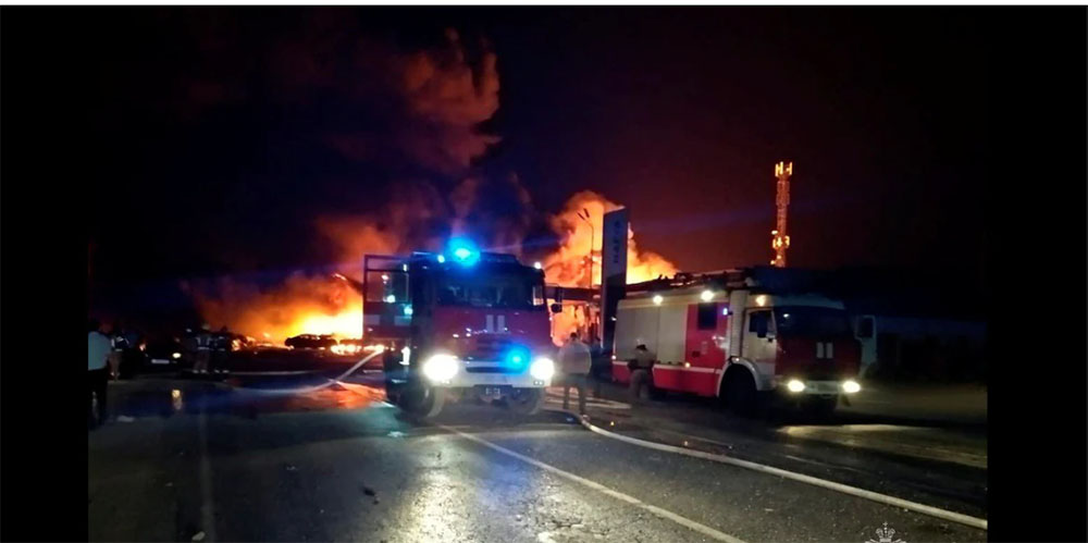 बीबीसीका अनुसार माखचकलामा रहेको पेट्रोल पम्पमा सोमबार राति उक्त दुर्घटना भएको हो। अग्नि नियन्त्रण कार्यालयका साथै सुरक्षा निकायको सहयोगमा आगो पूर्ण रुपमा निभाइएको छ।