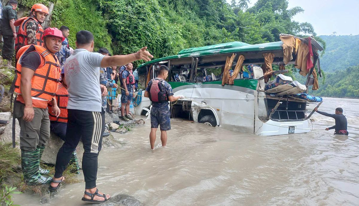 काठमाडौै, ६ साउन । काठमाडौंबाट म्याग्दी जाँदै गरेको बस धादिङको गजुरी गाउँपालिका–२, चालिसेस्थित त्रिशूली नदीमा खस्दा आठजनाको मृत्यु भएको छ । प्रदेश ३–०१–००५ ख ९९५२ नम्बरको बस अनियन्त्रित भइ राजमार्गबाट करिब ४० मिटर तल खसेको धादिङका प्रहरी नायव उपरीक्षक ९डीएसपी० सन्तुलालप्रसाद जैसवालले जानकारी दिए ।