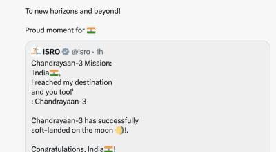 अवतरणपछि भारतीय प्रधानमन्त्री नरेन्द्र मोदीले यो एक अविश्मरणीय भएको बताएका छन् । प्रधानमन्त्री मोदी व्रिक्स सम्मेलनका क्रममा साउथ अफ्रिकाको राजधानी जोहनेस्वर्गमा रहेका छन् ।