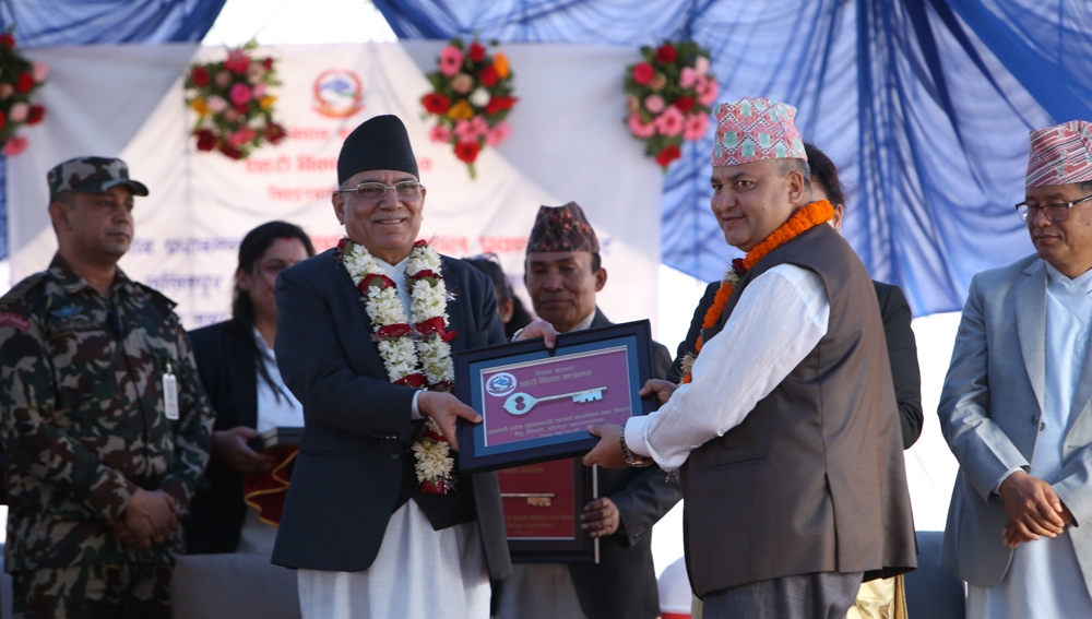 आइतबार ललितपुरको भैंसेपाटीमा बनेको १४ वटा ब्लक प्रधानमन्त्री पुष्पकमल दाहाल प्रचण्डले हस्तान्तरण गरेका छन्।