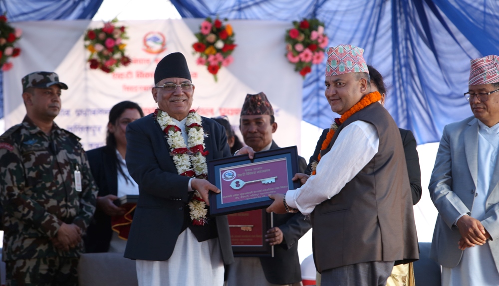 प्रधानमन्त्री पुष्पकमल दाहाल प्रचण्डको हातबाट आवासको साँचो लिँदै गर्दा खुसीले मुख्यमन्त्री जम्मकट्टेलको गाला तनक्क तन्किएको सजिलै देख्न सकिन्थ्यो।