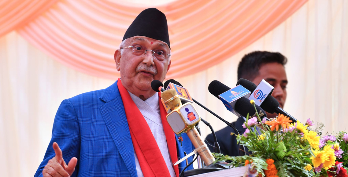‘विप्लव त माओवादी प्रचण्डले हिंसा छाडेपनि उनले छाडेका थिएनन्। बम लगाउँदै, आगो लगाउँदै, सुतली बम गर्दै हिँडेका थिए। प्रचण्डले आफूले सँगै ल्याउन सकेका थिएनन, उनलाई हामीले हो राजनीतिको मूलधारमा ल्याएका हौं,’ ओलीले भने।