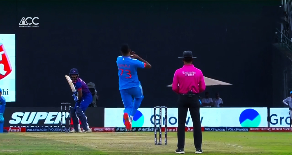 सोमपालले ५६ बलमा २ छक्का र एक चौका प्रहार गरे । आसिफले ९७ बलमा ८ चौका र कुशल भुर्तेलले २५ बलमा २ छक्का र २ चौका प्रहार गरेका थिए । भारतका मोहम्मद सिराज र रवीन्द्र जडेजाले ३र३ विकेट लिए । मोहम्मद सामी, हार्दिक पान्ड्या र सार्दुल ठाकुरले एकएक विकेट हात पारे ।