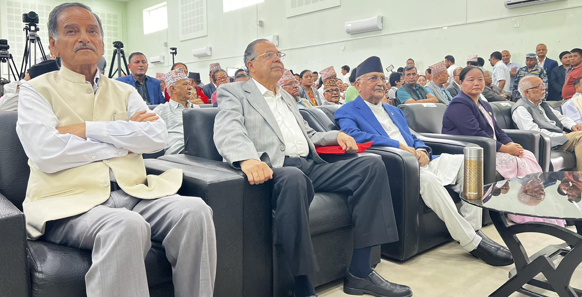 संविधान सभाका अध्यक्ष तथा एमाले उपाध्यक्ष नेम्वाङको स्मृतिमा आयोजित ‘सुवास र संविधान’विषयमा प्रवचन कार्यक्रममा सहभागी हुँदा खनाल र केपी शर्मा ओली एकै ठाउँमा देखिए।