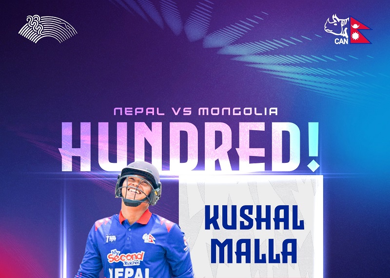 काठमाडौ १० असोज । नेपालका कुशल मल्ल टी–२० मा सर्वाधिक छिटो शतक प्रहार गर्ने खेलाडी बनेका छन् । १९ औँ एशियाली खेलकुद अन्तर्गत क्रिकेटमा मंगोलियासँगको खेलमा मल्ले ३४ बलमा शतक पुरा गरेर कीर्तिमान बनाएका हुन् ।