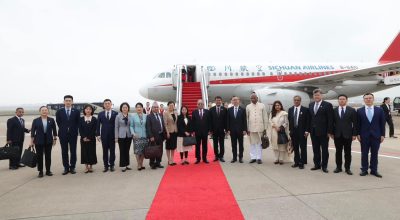 प्रधानमन्त्री प्रचण्ड सवार एयर चाइनाको विमान शनिबार बिहान काठमाडौंस्थित त्रिभुवन अन्तर्राष्ट्रिय विमानस्थलमा ११ बजे अवतरण गरेको हो ।