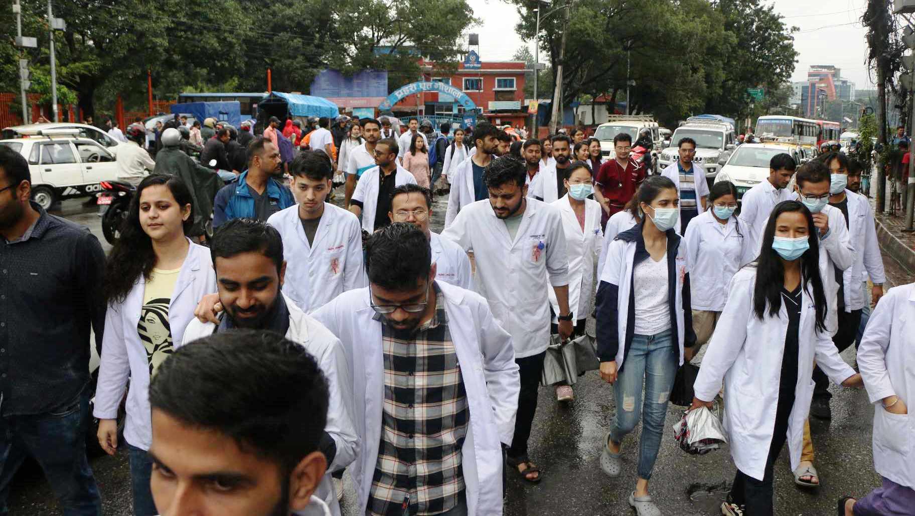 काठमाडौं, १६ असोज । कुटपिटको घटनापछि आन्दोलनमा उत्रिएका काठमाडौं मेडिकल कलेजका चिकित्सक स्वास्थ्यकर्मी आजदेखि नियमित काममा फर्किएका छन् ।