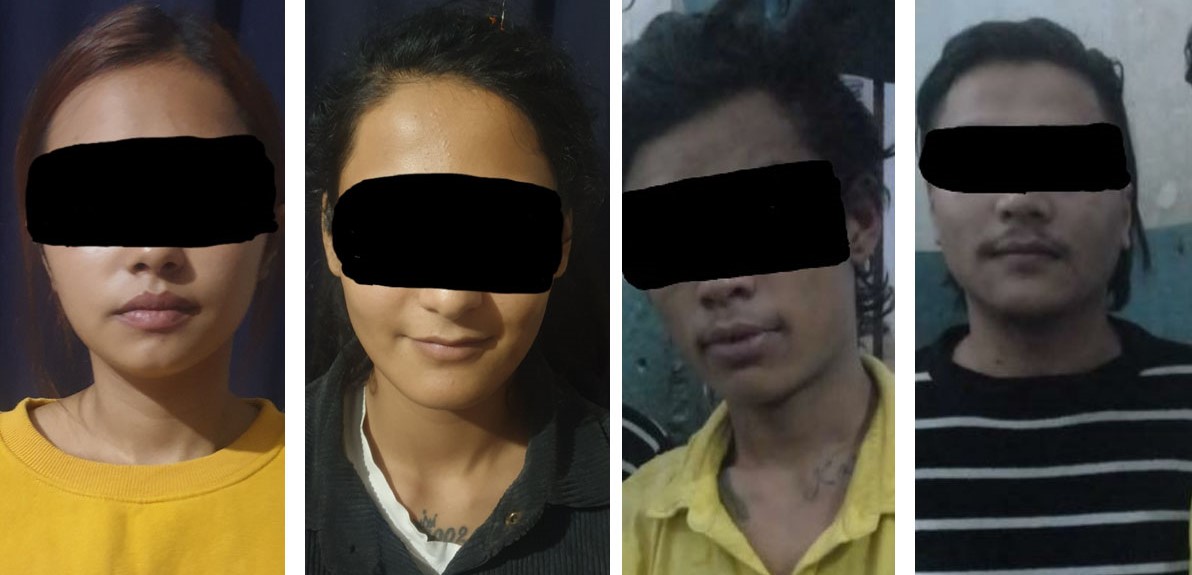 पक्राउ पर्नेमा ललितपुर नागबाहल बस्ने १९ वर्षीय अरबिन ठकुरी, २० वर्षीय सोनिया श्रेष्ठ खड्गी, ललितपुर एकान्तकुना बस्ने २२ वर्षीय सन्देश खड्गी, मकवानपुर हेटौंडाका १९ वर्षीया भूमि मल्ल छन् । प्रहरीले अरबिनलाई चक्कुसहित पक्राउ गरेको छ ।